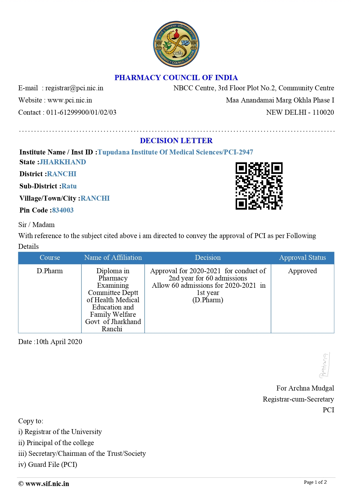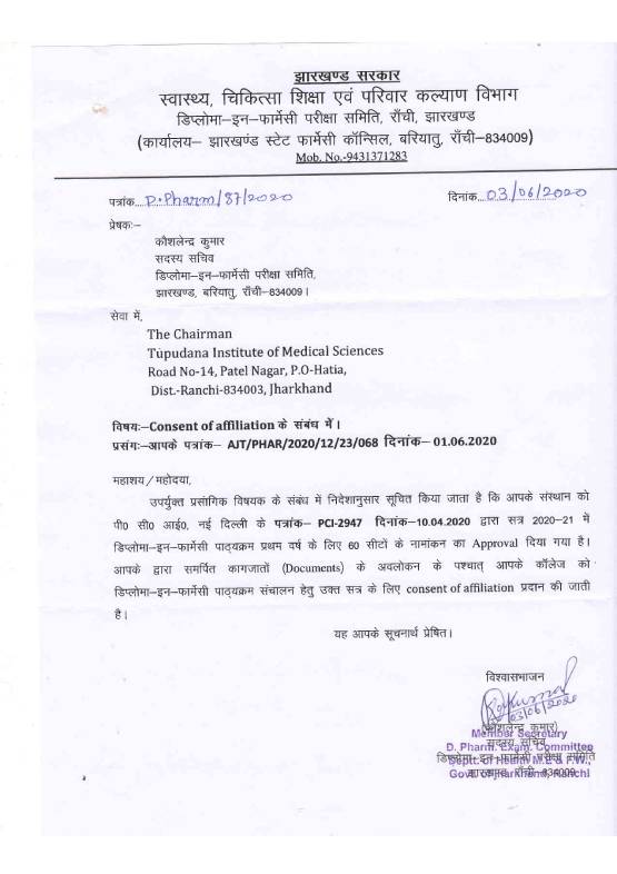 Candidates who have passed 10+2 Intermediate from Any Boards with Physics and Chemistry as compulsory subject along with one of the following subjects. Subjects: Mathematics/Bio-Technology/Computer Science/Biology are eligible for /Admission to1st year of Diploma in Pharmacy Course offered by private colleges/Institutions of Jharkhand.